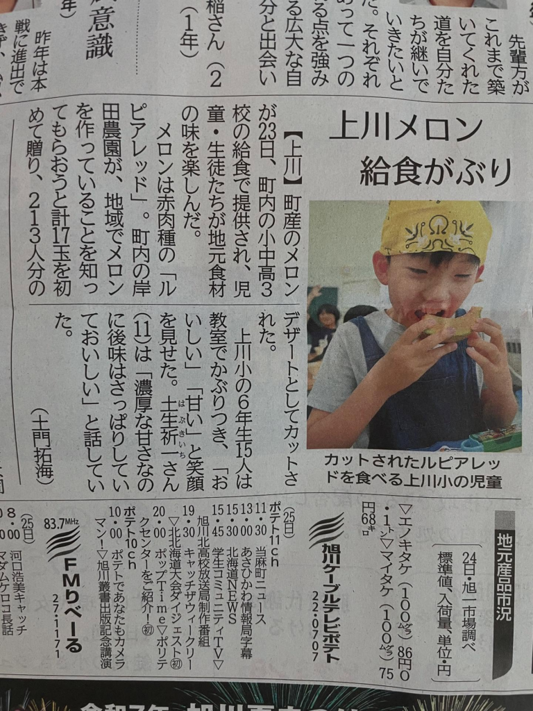 コロナ前から上川町の給食へメロンを提供し、上川町にもこんなに美味しい果物を作っている農家がいるんだよって、知って欲しかったのがきっかけです![]()